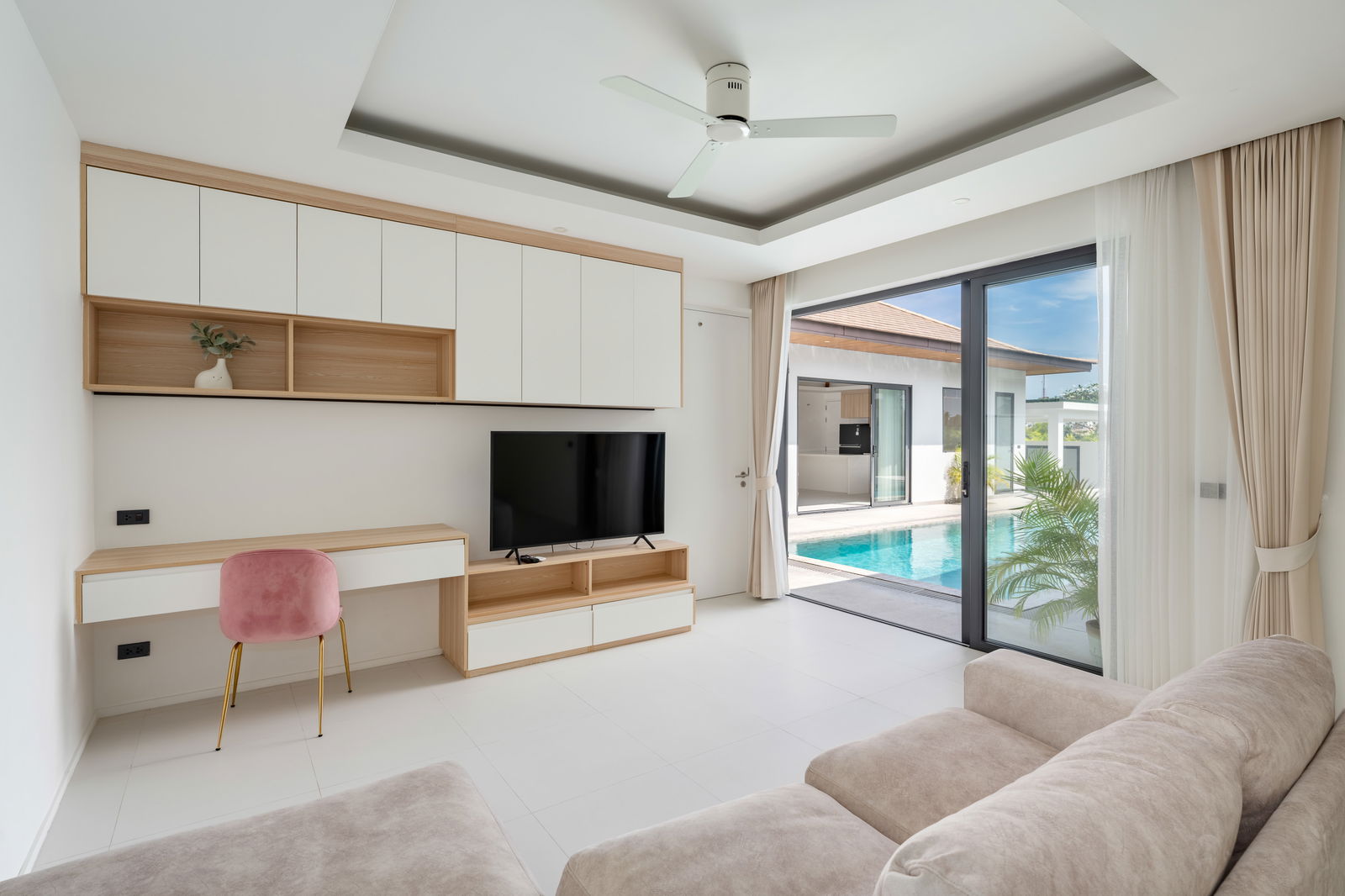 With a land area of 700 sq.m and a build area of 353 sq.m, the villa features a U-shaped architectural design with 3 double bedrooms and 4 bathrooms. All bedrooms are en-suites and open onto the pool and deck areas, while one bedroom offers external access only, making it suitable for an independent family member.