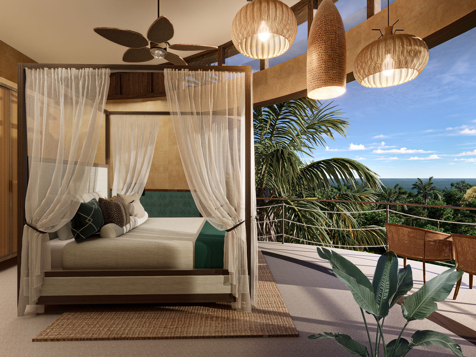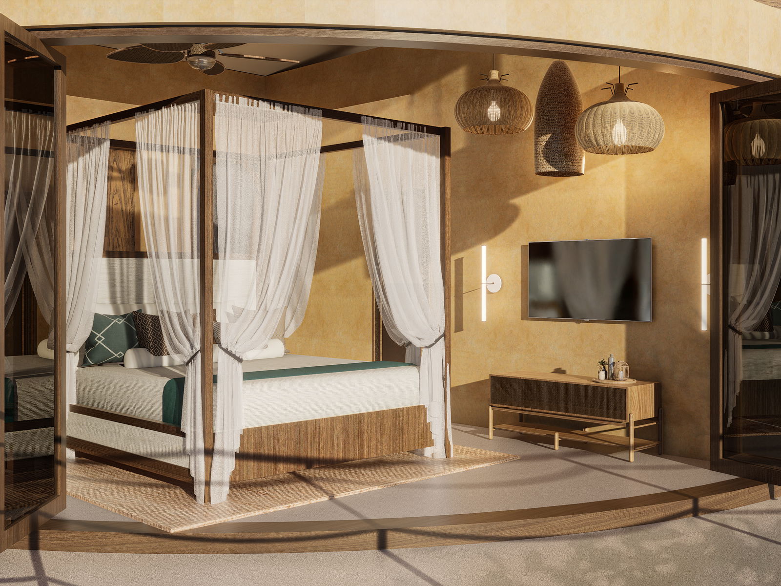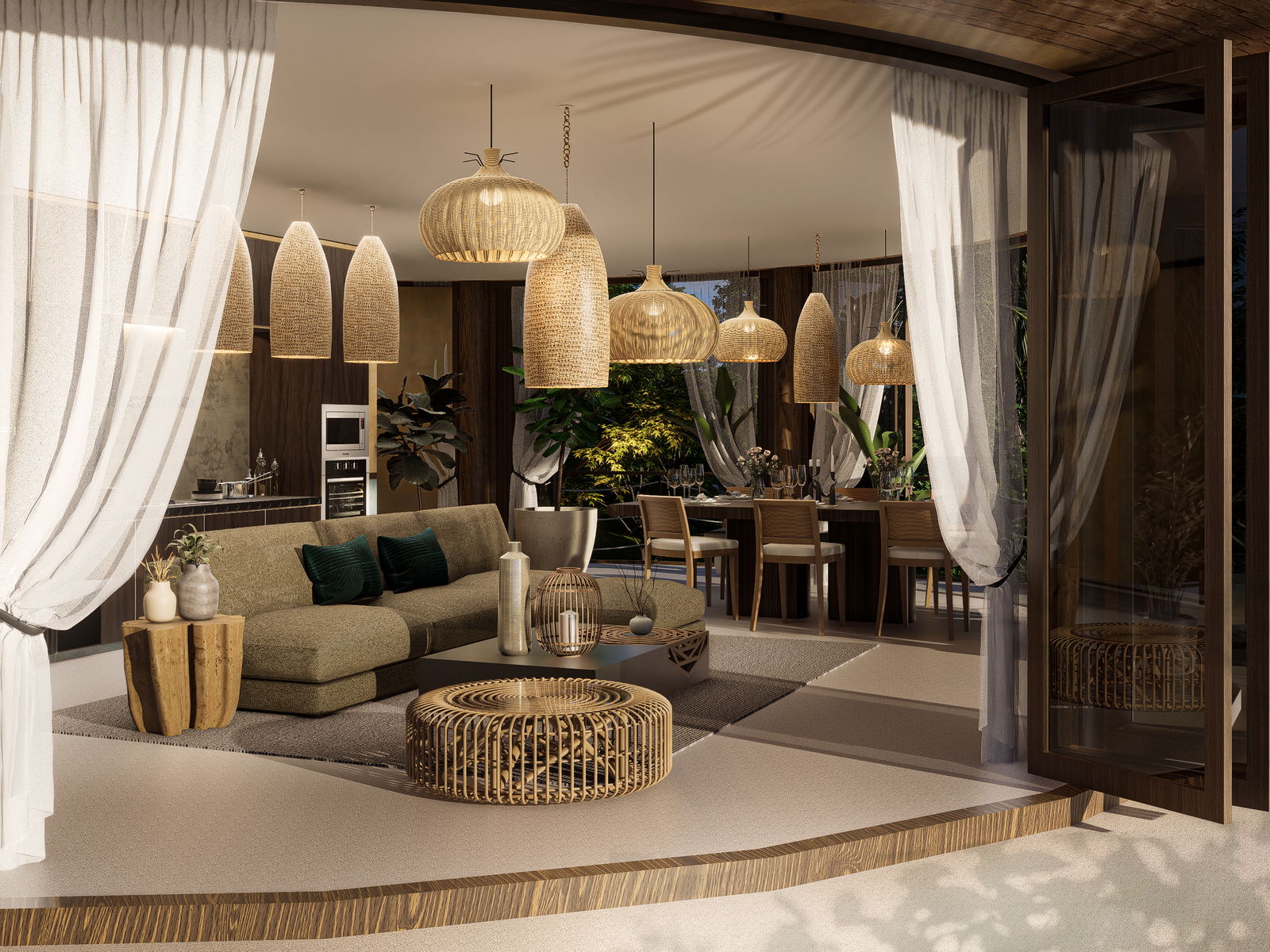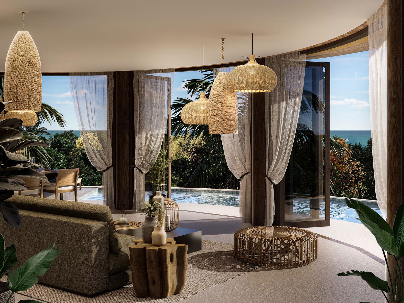 With a build area of 220 sq. m, the villas continue the relationship between architecture and nature that defined Kunkhao Tara, with organic forms, natural materials, and a close connection to the surrounding landscape. Each villa has 2 bedrooms and 3 bathrooms within an oval-shaped 2-storey design.