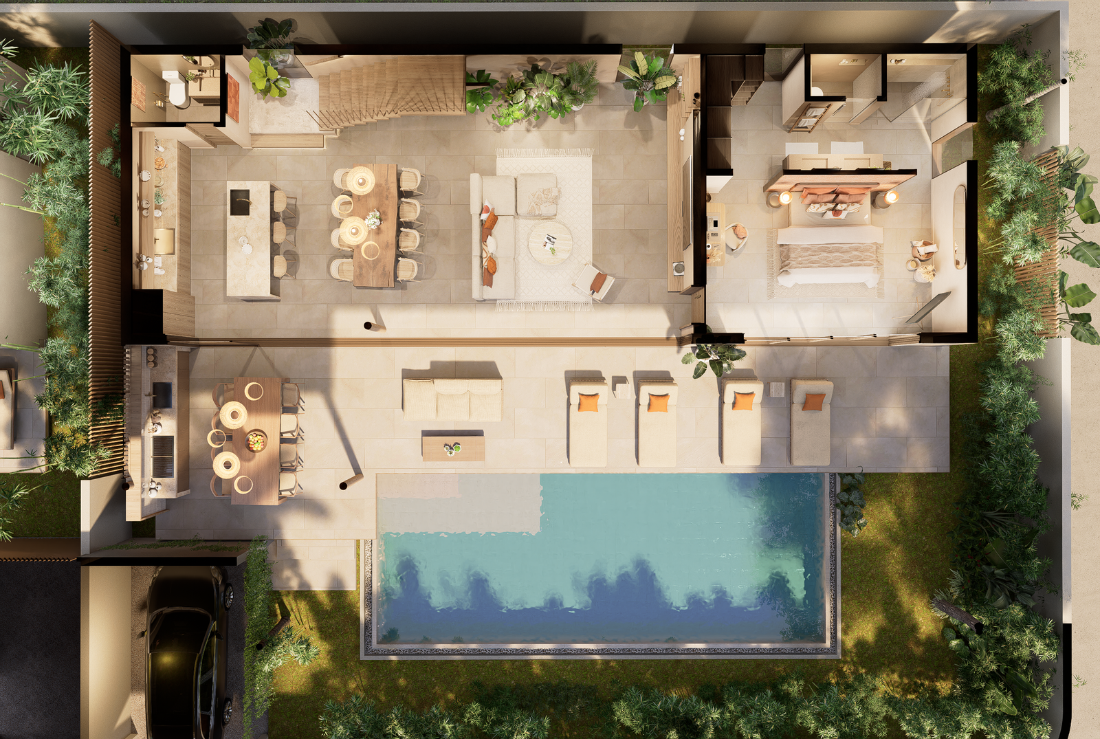 Designed for long-term living, each villa is arranged over 2 storeys, with layout options offering either 5 bedrooms or 4 bedrooms with a private office. Each layout features 4 en-suite bedrooms, air-conditioned interiors, a private office, a TV lounge, and built-in wardrobes, as well as a dedicated storage and laundry room and private parking.