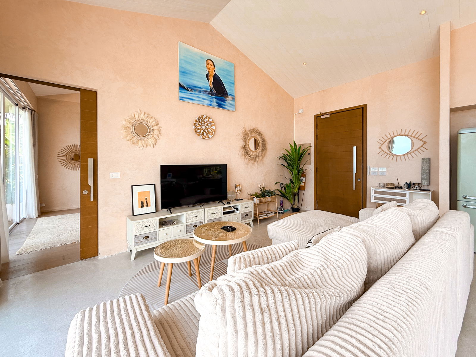 Villa Bohemian is a hillside sea-view villa project located at the top of the Bang Por Hills. Built in 2021, it forms part of a rare estate comprising more than 30 villas in various sizes, a scale that could no longer be replicated today under the island’s stricter building regulations. The estate was developed by Pacific Palisades, a developer known for its close attention to build quality and reliable post-completion management.